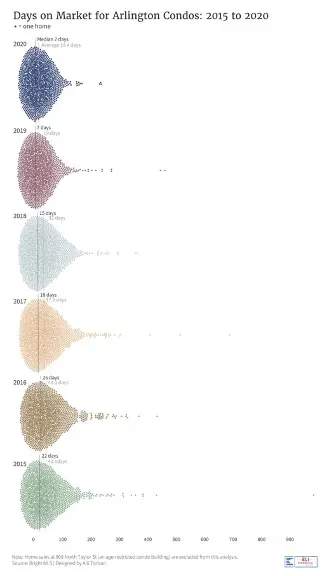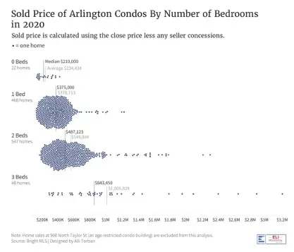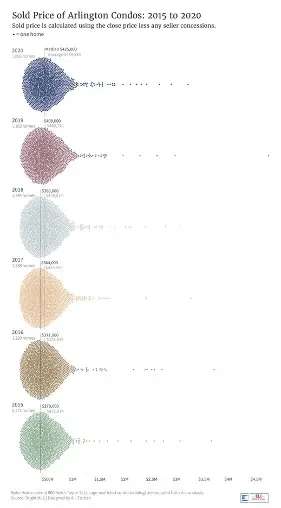 Below, I put together a series of charts to visualize how the Arlington condo market performed in 2020 and how that performance compares to the 2015-2019 markets.