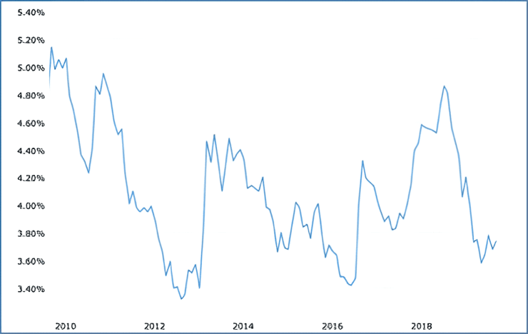 Answer: Mortgage rates increased sharply in 2018, peaking at 7+ year highs in the fall of 2018, and most experts expected that trend to continue into 2019 and for 30-year rates to clear the 5% mark for the first time since spring 2010. However, changes in economic policy and financial markets pushed rates down at the end of 2018 and throughout 2019, coming close to all-time lows in the 2nd half of 2019.