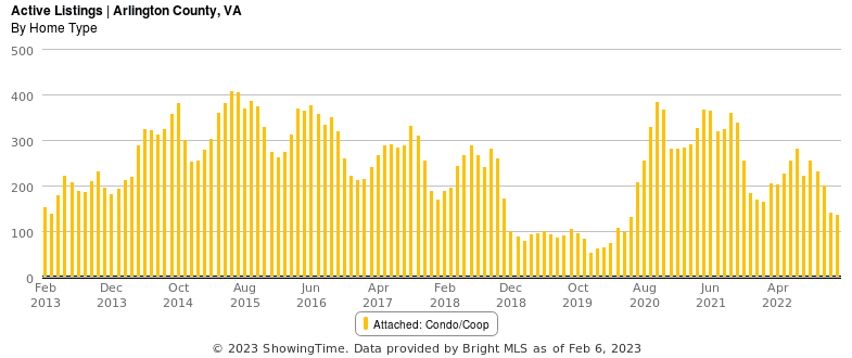 What is a normal condo market in Arlington? It’s hard to remember what a normal condo market looks like because we haven’t seen one since ~2017/2018. The market went red hot at the end of 2018 after the Amazon HQ2 announcement until being frozen by COVID in early 2020 and then from summer ’20 through 2021we saw a flood of condo inventory hitting the market as people left for more space, which kept prices from increasing like the single-family and townhouse market.