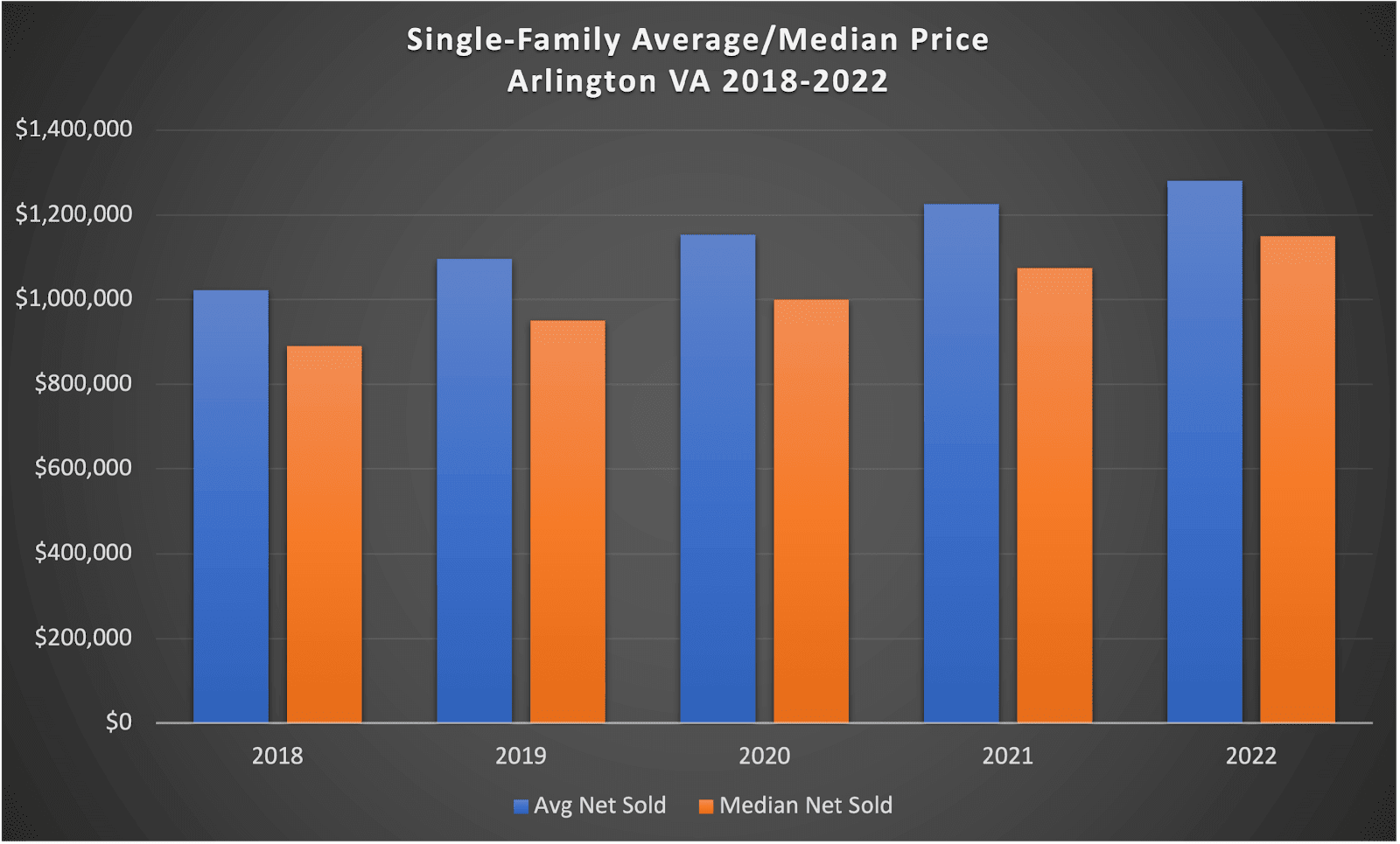 Over the last five years, the average and median price of an SFH in Arlington increased by 25.3% and 29.1%, respectively