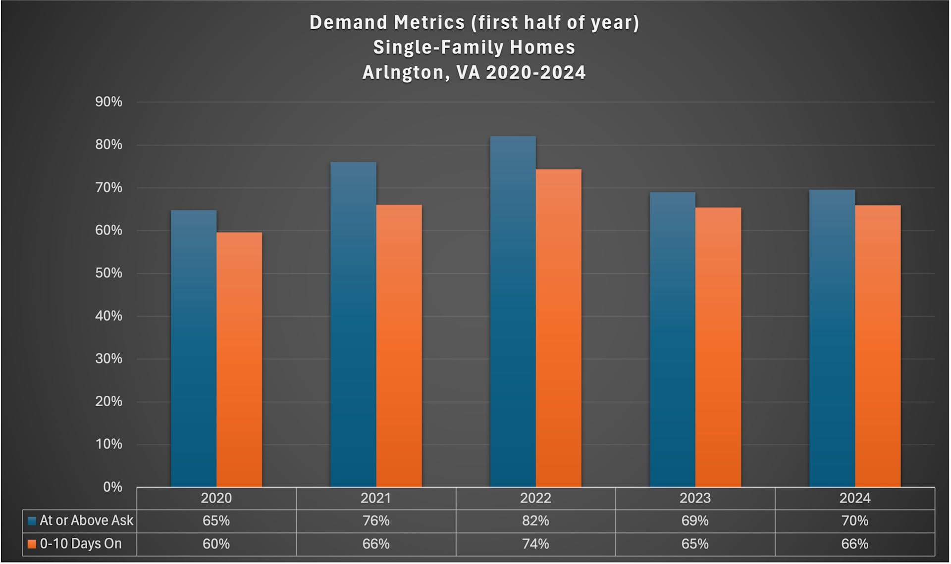 Let’s look at the performance of Arlington’s single-family home (SFH) market in the first half of 2024 compared to the previous four years: