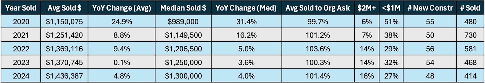 - The average SFH sold for more than $1.43M and if you remove new construction homes from the data, the average SFH sold for more than $1.32M