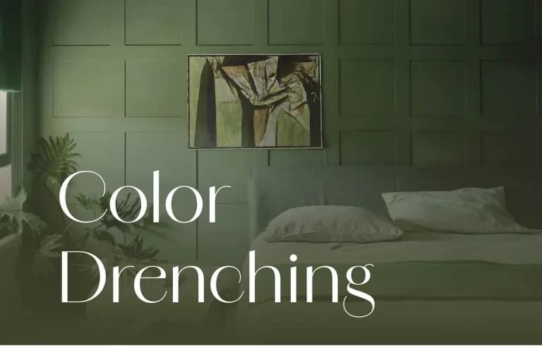 Color drenching is in! Best implemented in smaller spaces such as bedrooms, bathrooms, and pass-through spaces. This technique can make rooms appear more spacious and tidier, especially when you extend the monochromatic treatment to ceilings, baseboards, and doors.