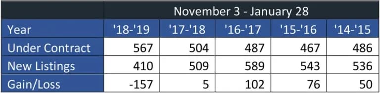 - No Time To Wait: 30% of homes listed since November 3 went under contract in five days or less. Of the 410 homes listed for sale since November 3 that are under contract or closed, they averaged just 17.5 days on the market which is 3x faster than the average time properties spent on the market the rest of 2018.