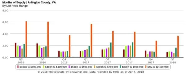 The only sub-market in Arlington with a healthy supply are homes listed for over $1M, with around four months of supply, while everything priced from $300k-$800k is under one month of supply.