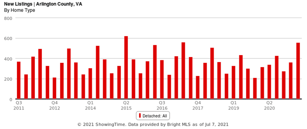 This week we’ll take a look at some charts and data that highlight what we’ve experienced so far in 2021 for single-family homes (SFH) in Arlington.