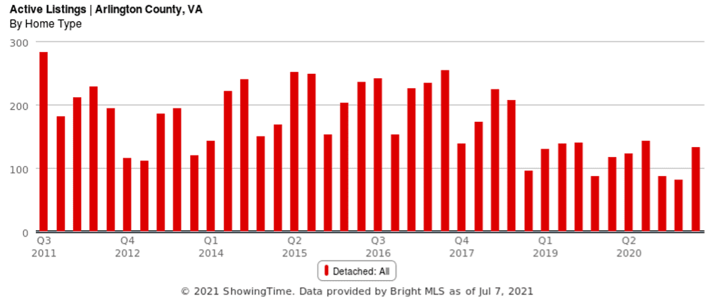 Despite strong listing volume, active inventory hit a 10+ year low due to demand outpacing new supply. We finished Q2 with 1.3 months of supply, which is about twice as high as Loudoun County, which is struggling tremendously with inventory levels.