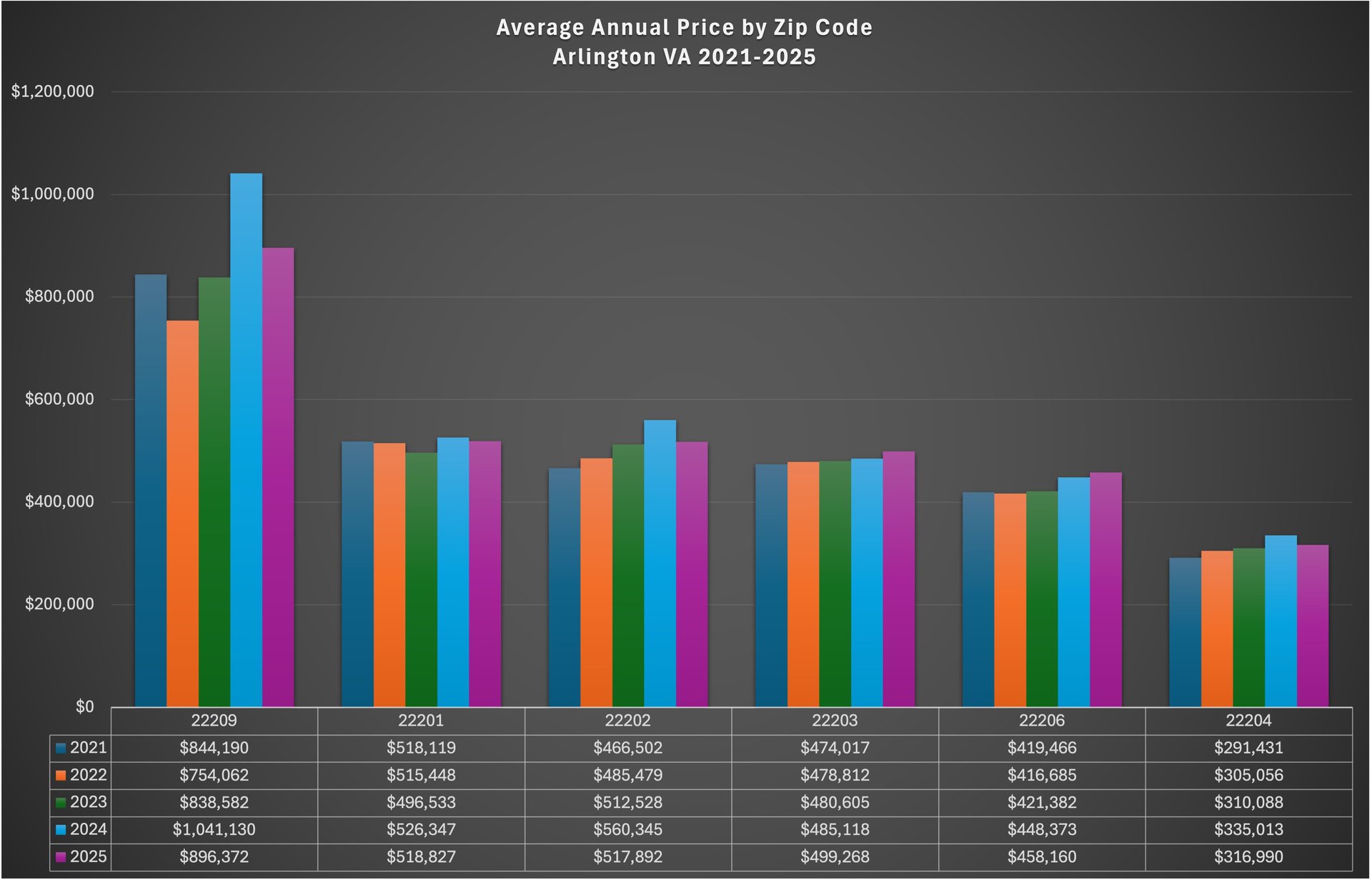 22209 (Rosslyn area), walking distance to Georgetown, the Lincoln Memorial, and Roosevelt Island, remains the most expensive condo zip code in Arlington due to its overwhelming share of luxury buildings (Pierce, Turnberry, Waterview, Wooster and Mercer, etc).