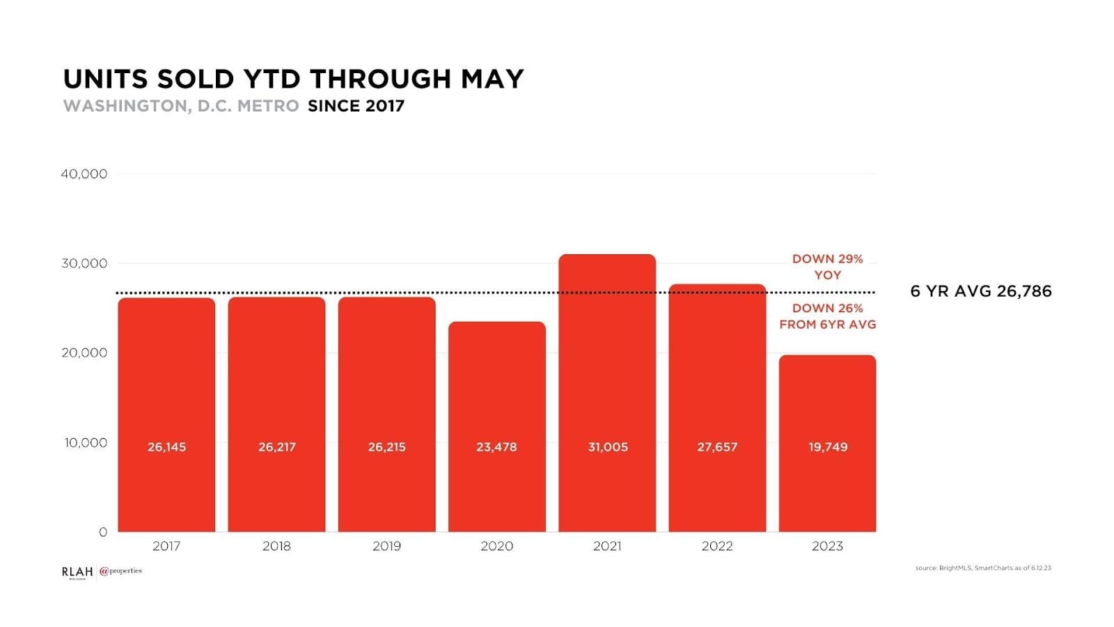 Answer: The DC suburbs are holding strong despite sticky interest rates, but DC is showing some weakness. Let’s jump into the charts and data that I think best highlight what we’re seeing so far this year: