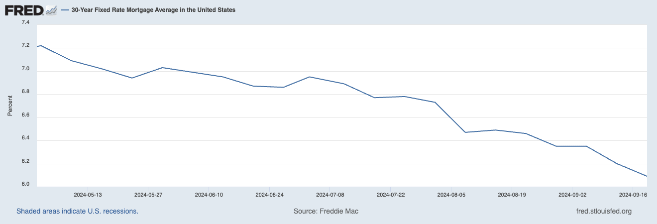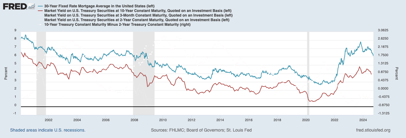 This suggests that even though the Fed has started cutting rates, we may not see mortgage rates drop much further. If we are returning to a more “normal” economic environment, where rates resemble pre-2008 levels, then current mortgage rates may already be close to as low as they will go.