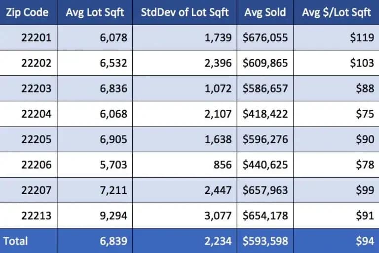 The data above takes homes of all sizes and condition into account so it doesn’t do a great job of isolating the actual market price of the land or how much people pay for tear-down lots in Arlington.