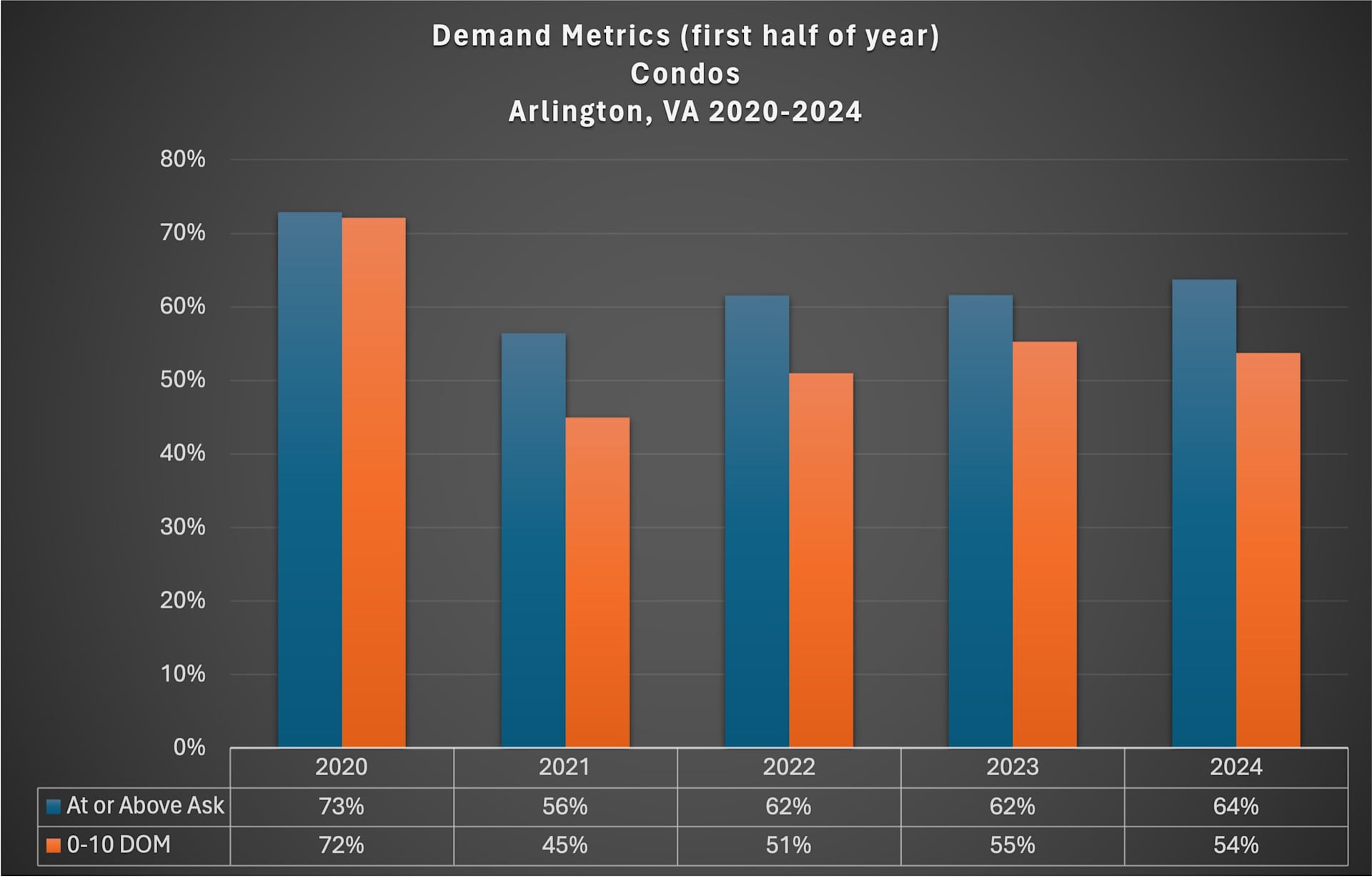 Question: How has the Arlington condo market performed in the first half of 2024?
