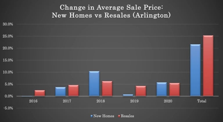 Question: How much of Arlington’s high housing prices are attributed to new homes?