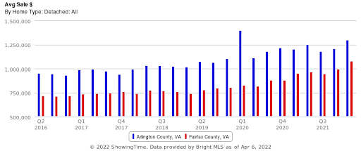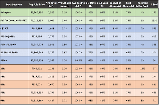 The average Arlington home sold for over $1.24M and the average Fairfax Co+ home sold for over $1M