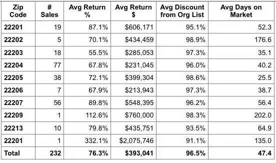 While not quite as common, I identified 232 likely flips by investors in which two sales occurred over a short period (usually within 12 months), and the second sale sold for a significantly higher price. Here’s a summary of the non-tear-down investor sales. Each has a corresponding purchase recorded in MRIS: