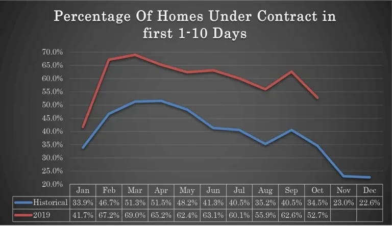 Historically, the percentage of homes that go under contract within the first ten days decreases from November-January, with November and December (holiday season) having the most noticeable reduction in quick sales. However, with the pace of the Arlington market at all-time highs in 2019, you can expect the drop in demand in November and December to feel like peak spring demand in previous years.Is The Winter The Right Time For You?
