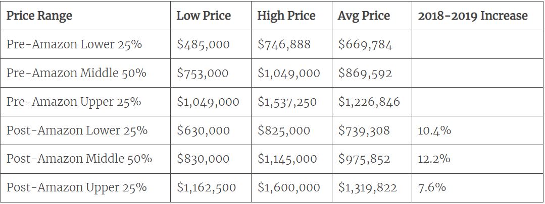 This two-part column is one of my attempts to provide an accurate picture about what’s actually happening in our real estate market. The key takeaway is that the market performed very well (if you own, not if you’re a hopeful buyer) following the Amazon HQ2 announcement, but prices haven’t skyrocketed the way many articles would lead you to believe.