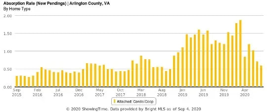 In short, listing volume for Arlington condos reached historically high levels in July and August, absorption (demand) is down, and months of supply is the highest it’s been since the fall of 2017.